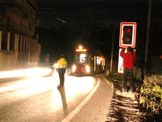 Dabei wurde, wie auch schon bei der ersten Probefahrt im Stadtnetz, von Technikern das Einhalten des Lichtraums kontrolliert, aber auch Zug- und Bremskräfte gemessen. Zwischen Hauptbahnhof und Mutters verkehrte während der Testfahrt ein Iveco-Minibus als Schienenersatz.