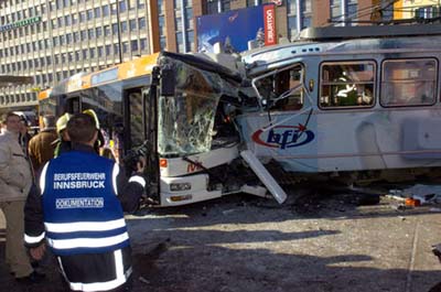14 Leicht- und zwei Schwerverletzte, einer davon der Fahrer des am Unfall beteiligten Linienbusses, sind nach den Angaben der Berufsfeuerwehr die traurige Bilanz dieses bereits zweiten Unfalles an der gleichen Stelle seit der Eröffnung des neu gestalteten Südtiroler Platzes im Herbst 2004.